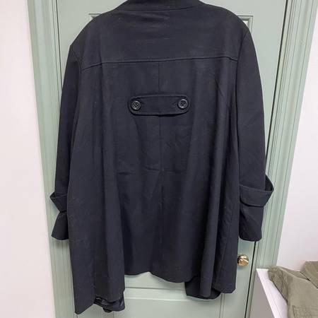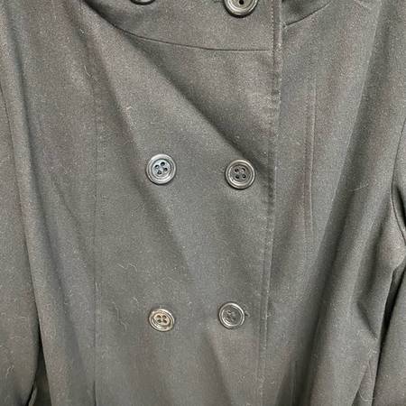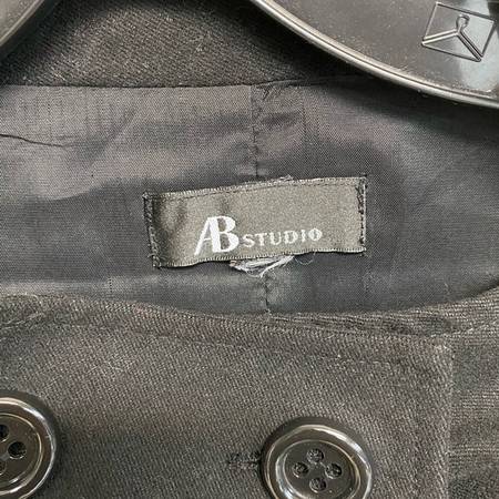 AB Studio Black Double Breasted Peacoat Jacket Medium Weight. Great detail with the wide neck, cuff button on sleeves, and buttons on the back. Great condition.
