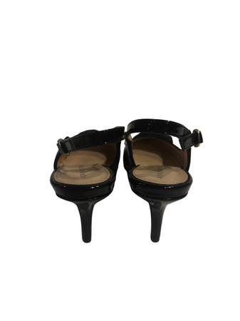 The Black Slingback Pumps 6.wf6025 by Adrienne Vittadini are stylish and sophisticated heels designed for women. Made from patent leather, these pumps feature a sleek black color and a slingback style, adding a touch of elegance to any outfit. With a comfortable fit and a height boost, these heels are perfect for adding a touch of glamour to your wardrobe. 2.5” heels.