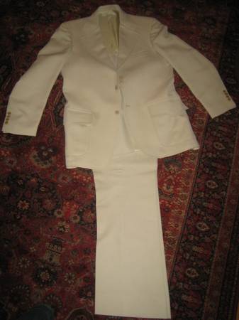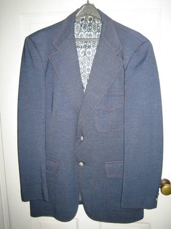 Boys 10 slim very sharp, new, neutral tiny houndstooth check double breasted blazer. The check is a tiny black, khaki, and white houndstooth, very understated. Would look nice paired with black or khaki pants, shirt, tie or no tie. Never worn. Boys navy double breasted blazer size 8 regular. Perfect for any special occasion, wedding, communion, etc. $50 obo. each. Men's suits, sportscoats, one 70's leisure suit, $50 your choice. Shirts, ties. Vintage thick leather cross body shoulder travel bag about 12.5 inches by 10.5 inches by 3.25 inches with front pocket about 7 inches by 5.5 inches by 1.5 inches, and adjustable leather shoulder strap that surrounds the bag, $50 (zipper needs fixing of the zipper fabric or else a new zipper). Ski pants and nylon wind shirts, small sizes.