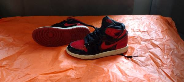 Boys red and black jordans, size 1 y. They do have a few scuff marks on them.