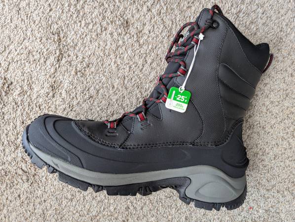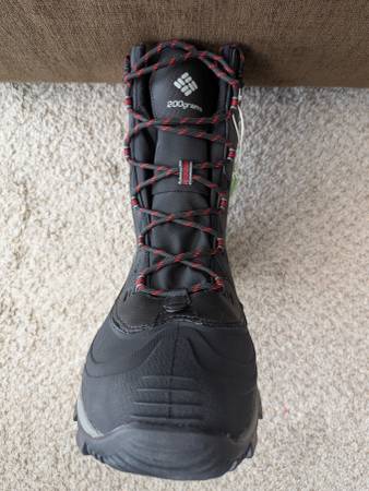 - New. Never Used. - Brand - Columbia Bugaboot - Size - Men's 12 Wide - 200 Grams Insulation for Protection Upto -23F/-32C Degrees, Waterproof - Upper Color - Black/Bright Red/Light Gray - Sole...