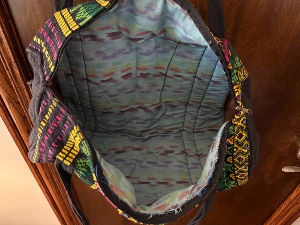 Vintage Woven Guatemalan Rainbow Fabric Tote Bag Duffel Rucksack Backpack 17" x 10" x 9" In great vintage shape from a smoke-free home. The interior is clean as well.