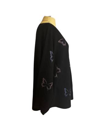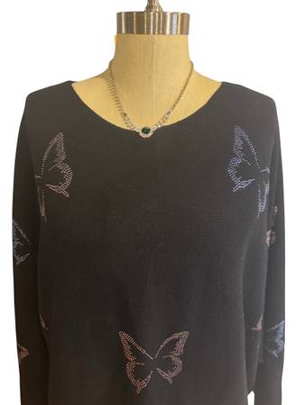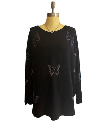The Black Loose Sweater Tunic in size 2XL is a stylish and comfortable option for plus-size women. Featuring a tunic style and a versatile black color, this sweater is perfect for everyday wear or dressing up for a more polished look. Made from soft and cozy fabric, this sweater offers a relaxed fit while still maintaining a fashionable edge. Perfect for layering or wearing on its own, this versatile piece is a must-have in any woman's wardrobe. 49% rayon 29% polyester 22% nylon. 60 chest 28 length.