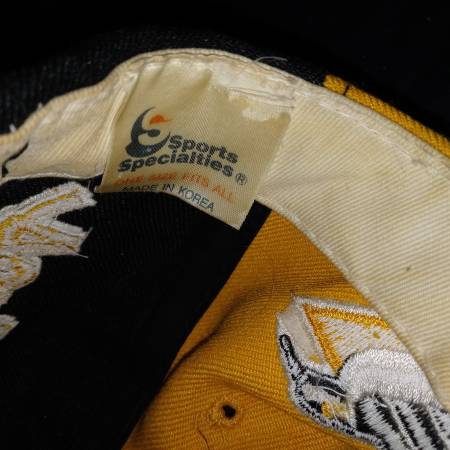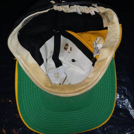 It has been worn & has discoloration inside due to age and being worn can be worked out maybe also has tape on the snap back part & you can check it out before buying.
