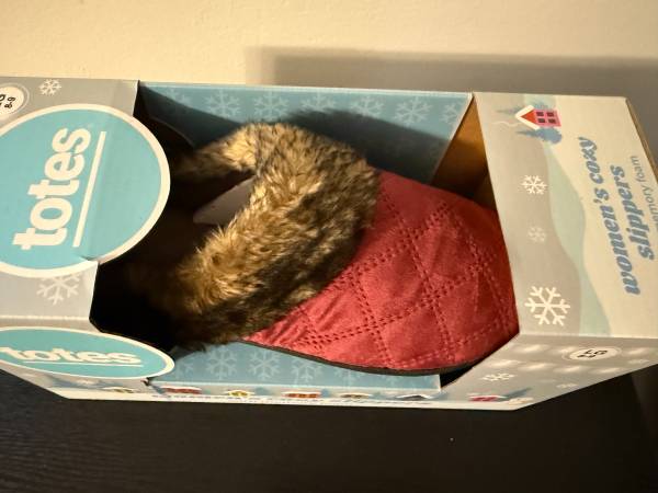 These Totes Women's Slippers in red maroon feature a cozy memory foam footbed for added comfort. The slide style slippers are designed with a faux suede upper material, making them soft and stylish. With a US shoe size of 8-9, these slippers are ideal for women seeking a snug and cushioned fit. Ideal for lounging around the house, these slippers strike a perfect balance between practicality and luxury.