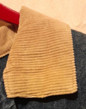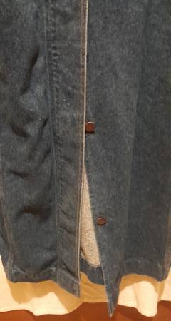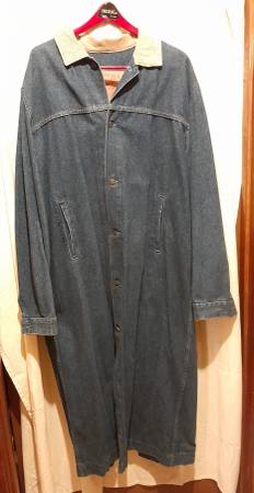 Made in the USA, 100% cotton pre-owned Levi long coat with corduroy cuffs and collar is size XL is in excellent condition. It's roughly 54" from collar to botton. Pickup or priority shipping and handling will be $15 with payment of cash, check, Zelle or the CashApp