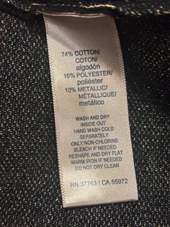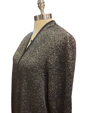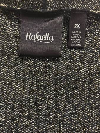 The Women’s Black & Gold Cardigan by Rafaella is a stylish and unique sweater designed for plus-size women. Made in a luxurious black and gold color scheme, this cardigan exudes a metallic theme that adds glamour to any outfit. The 2X size ensures a comfortable fit, while the sweater style offers a versatile and chic option for any wardrobe. Perfect for women looking to make a statement with their outerwear, this cardigan is a must-have piece for those who appreciate both fashion and quality. 74% cotton 16% polyester 10% metallic. 25 sleeves 19 shoulder 33.5 length.
