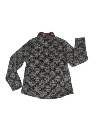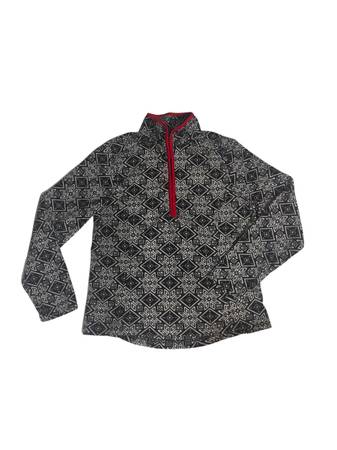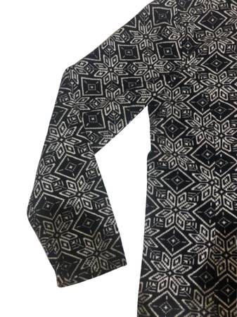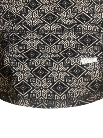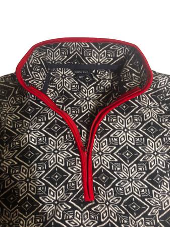 The Women's Fleece Mock Sweater from Lands' End is a stylish pullover in a classic black and white color scheme. Made from cozy fleece fabric, this sweater in size 10 is perfect for staying warm and fashionable during the colder months. Ideal for women looking for a versatile and comfortable addition to their wardrobe, this mock sweater is a great choice for everyday wear. 38 chest 24 sleeve 15.5 shoulder 25 length.