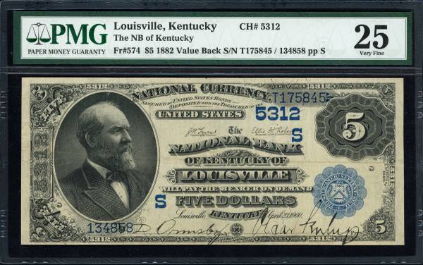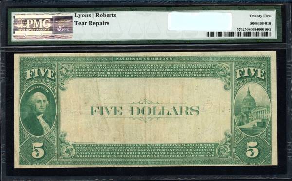 1882 National Bank Note $5 Fr. 574 PMG VF25 tear repair