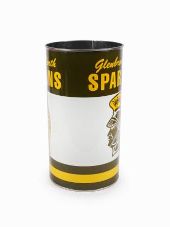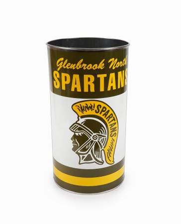 Vintage new-old-stock Glenbrook North Spartans Football High School metal trash bin, three available, large 19.25"H x 10.5"W, medium 19.25"H x 10.25"W, small 19.25"H x 10"W, stackable. $30 each.