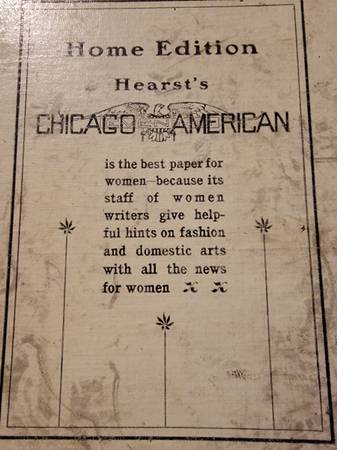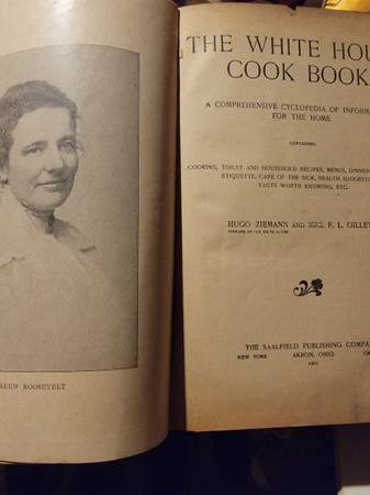 Hardcover Cookbook sold ( ? ) or subscription gift from William Randoph Hearst's Chicago American newspaper ca. 1905. Chapters on Facts Worth Knowing , Toliet Recipes and 2 pages of French words in cooking. ( Royko said anyone using French in a newspaper he ran would summarily be fired.) Pages yellowed but book intact. No mold. Can drop off. Thanks.