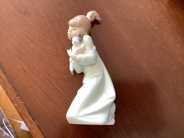 Lladro 5712 “Sleepy Kitten” Porcelain Glossy Figurine of Girl Holding Cat, Vintage