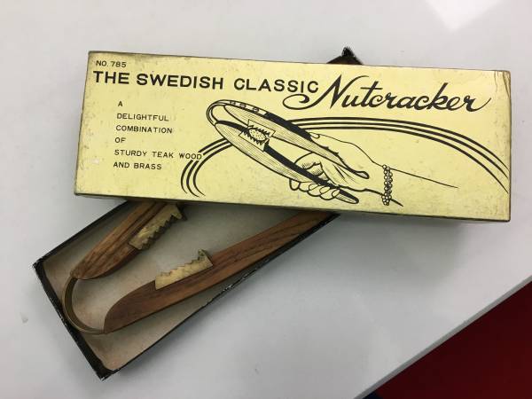 MCM Swedish classic teak and brass mid-century nutcracker in original box. 9" long x 3 1/2" wide. Never used. Perfect. $95.00 See it on 1stdibs without the box for $390.00 A second one in the box is available for an additional $95.00 show contact info