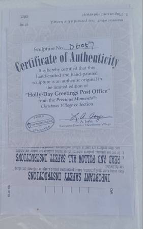 From the Christmas Village collection in pristine condition with the light cord and certificate of Authenticity.