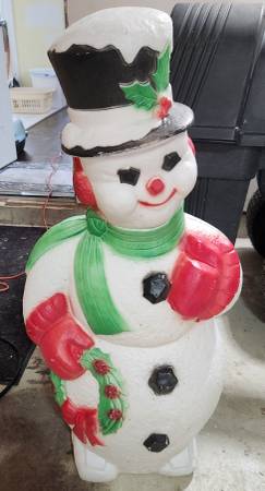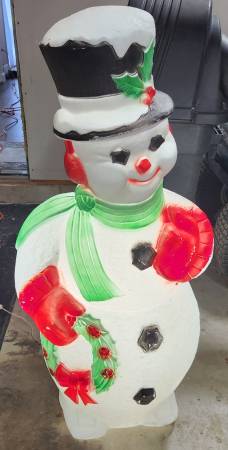 Large Snowman in gently used condition. A true collectable. Stands 42" Tall Local pick up ONLY! Contact for more Information. I will not respond to is it still avaialble request!