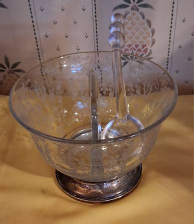 Vintage divided dish is 3 3/4" high, 5 1/4" in diameter and the spoon is 6" long. Pickup or shipping and handling will be $12 with payment of cash, check, Zelle or the CashApp.