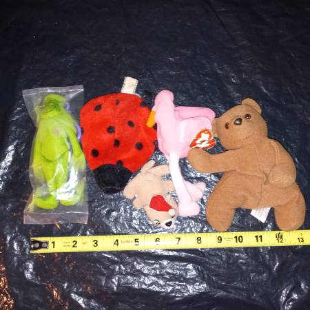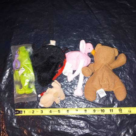 $10 total for all or I can maybe throw 1 or 2 in for free if you buy other things from me, so see my other ads. Thanks Grinch Lady Bug Pinky The Flamingo Beanie Baby 1996 Brown Bear Pound Puppy Cash...