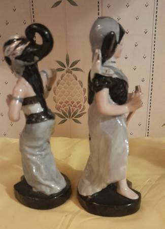 Roughly 6 1/2" tall and in very good condition, the gold staff is broken on one as shown in the last picture. Pickup or priority shipping and handling will be $12 with payment of cash, check, Zelle...
