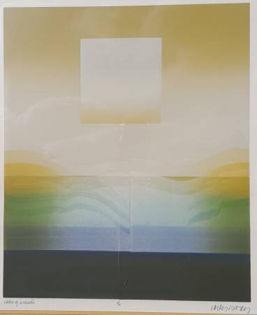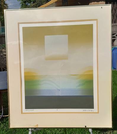 30" by 34 1/4". Has watermark that's not on the print and a small crack to the glass.