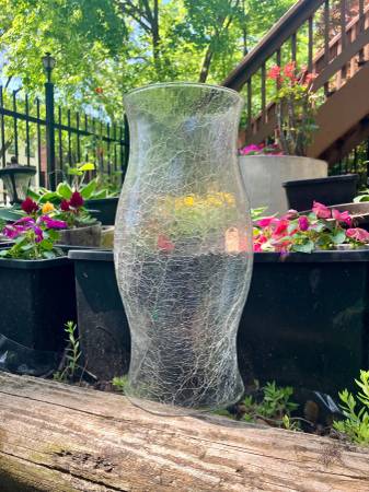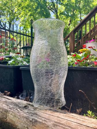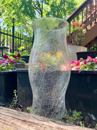 Vintage Crackle Glass Hurricane 11 x 4.75 - Excellent Condition -...