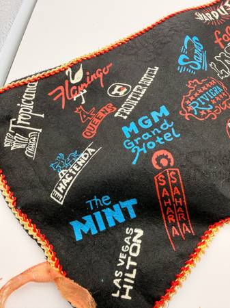 This great pennant is covered in Las Vegas hotel and casino logos from the strip. Many of the hotels are no longer in business! Overall in good condition for its age. 25.5" x 8.5"