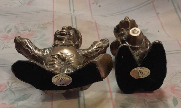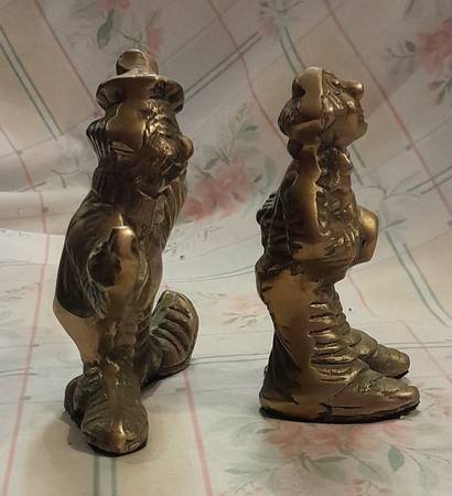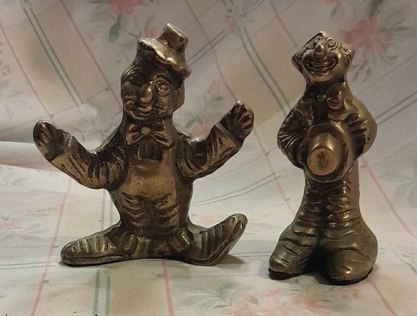 Two Mid Century Modern brass clowns averages 5" tall. Pickup or priority shipping and handling will be $10 with payment of cash, Zelle or the CashApp