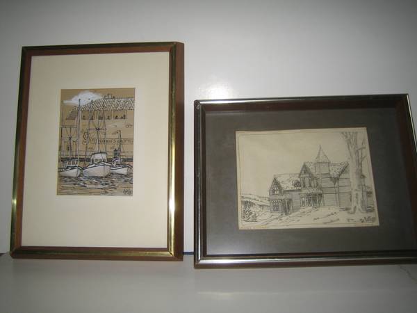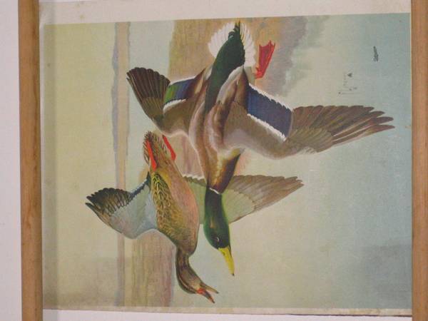 VINTAGE VARGA PRINT OF LADY WITH BLUE FEATHER $25. BLACK AND WHITE POSTER PRINTS OF OLD CHICAGO FRAMED $75 each. VINTAGE PRINTS OF BABY IN A TUB, BABY WITH A DOG, DUCKS IN FLIGHT $25 each. VINTAGE PRINTS OF GEORGE WASHINGTON $25, AMERICAN LEGION PREAMBLE TO THE CONSTITUTION OF THE UNITED STATES OF AMERICA $25, OLD MISSION BUILDING $25. VINTAGE UNITED AIRLINES ALOHA GREETING COUPLE NEARLY LIFE SIZE HAS SOME WATER DAMAGE ON THE BOTTOM $25. VINTAGE 1956 MAP OF CHAIN- O-LAKES IN ILLINOIS $50. LAMINATED PERENNIAL FLOWERS AND BEDDING PLANTS POSTERS $25 EACH. LOCOLINC WIRELESS ADDRESSABLE CONTROL ADVERTISING POSTER $25. OLD STAMP ALBUM. ANTIQUE/VINTAGE PORTFOLIO/BOOKLET/ OR ALBUM OF GRAPHIC DESIGNS AND STYLES OF THE TIME, ILLUSTRATIONS, PICTURES, COMPRISED OF A SET OF 48 INDIVIDUAL PLATES, EACH OF WHICH WOULD BE FRAMABLE. THERE ARE TOO MANY TO PHOTOGRAPH SO THE PICTURE JUST SHOWS THE COVER OF THE ALBUM OR BOOKLET THAT TIES THE SET OF 48 TOGETHER. THE COVER HAS THE WORDS WRITTEN IN GERMAN - GRAPHISCHE NEUHEITEN. KARTEN, VIGNETTEN, UMRAHMUNGEN, BUCHSCHMUCK. ETIKETTEN, MONOGRAMME, INITIALEN, ZIERLEISTEN, KALENDER, PLAKATE. SERIES I. 48 TAFELN. ORIGINALENTWURFE IN FARBEN - UND LICHTDRUCK. FRIEDR. WOLFRUM & CO. VERLAG FUR ARCHITEKTUR UND KUNSTGEWERBE, WIEN UND I.EIPZIG. TO BE CLEAR, THE PHOTO SHOW SOME OF THE MANY ADDITIONAL PLATES/PAGES OF THE TIME BUT ARE NOT PART IF THE ABOVE MENTIONED BOOKLET/PORTFOLIO. THERE ARE ALSO RUG AND LAMP DESIGNS AND DIFFERENT GRAPHICS. THERE ARE 48 PLATES ORIGINAL TO THE PORTFOLIO. THERE ARE ADDITIONAL PLATES THAT ARE AVAILABLE BUT NOT PART OF THE ORIGINAL 48 PLATES THAT ARE PART OF THE PORTFOLIO. PHOTOS ONLY SHOW A SAMPLE OF WHAT IS HERE. CASH AND CARRY ONLY.
