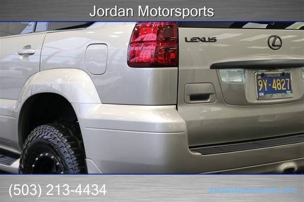 UP FOR GRABS IS A SUPER HARD TO FIND IN THIS SHAPE AND CONDITION AND LOW MILES LOCAL OREGON FRESH TRADE IN 2-OWNER SINCE NEW CLEAN TITLE AND CARFAX CERTIFIED 2004 LEXUS GX-470 LOADED WITH ALL AVAILABLE OPTIONS FROM THE FACTORY INCLUDING NAVIGATION SYSTEM, MARK LEVINSON AUDIO PACKAGE, BACK UP CAMERA, HEATED SEATS, REAR AIR, 3RD ROW SEATS, RUNNING BOARDS, ROOF RACK, TOW PACKAGE AND MUCH MORE. NO SIGNS OR RECORDS OF ANY ACCIDENTS EVER, NO MAJOR DENTS OR SCRATCHES AT ALL, LIKE NEW NON-SMOKER INTERIOR FREE OF ANY RIPS OR TEARS OR ANY STAINS ON CARPET OR BROKEN PLASTICS. THIS GX HAS ALWAYS BEEN VERY WELL CARED FOR AND SERVICED ON TIME WITH ALL RECORDS SINCE NEW, WE JUST DID A MAJOR FULL SERVICE INCLUDING A NEW TIMING BELT & WATER PUMP, NEW TENSIONERS & GUIDES, NEW RADIATOR HOSES & CLAMPS,NEW OIL CHANGE & FILTER, NEW AIR FILTER, FRESH COOLANT, NEW THERMOSTAT, NEW REAR BRAKES, NEW AXLES, BRAKE FLUID FLUSH, RECENT FULL DIFFERENTIAL FLUID FLUSHES AND TRANSFER CASE AS WELL TRANSMISSION SERVICE. THIS GX HAS NEVER BEEN DRIVEN IN MUD OR SNOW, NEVER BEEN OFF ROAD, WE JUST DID A NEW OVERLAND BUILD ON IT INCLUDING FRONT ADJUSTABLE BILSTEIN TOYTEC 2" LEVEL LIFT WITH REAR IRON MAN 2"MEDIUM LOAD COILS AND REAR AIR BAG DELETE PKG, WE ALSO UPGRADED THE WHEELS TO 17" METHOD WHEELS WITH FALKEN WILD PEAK AT3W TIRES, THIS GX COMES WITH TYGER ROOF BASKET, WEATHERTECH FLOOR LINERS IN FRONT AND REAR ROWS, ALSO COMES WITH ALL ORIGINAL BOOKS AND MANUALS AS WELL.