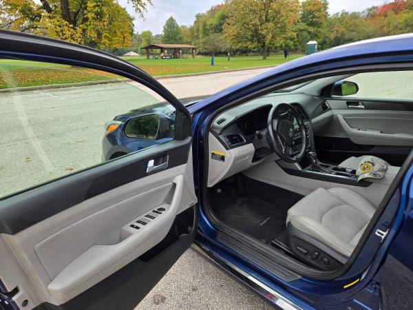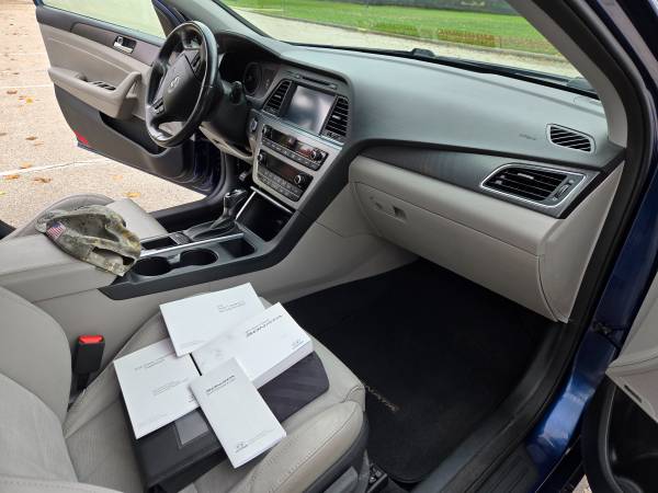 For sale here is a 2015 Hyundai Sonata Limited, Blue exterior, gray leather interior with only 34,000 original miles. It comes nicely equipped with the premium package (leather, blind sport with cross traffic etc),
