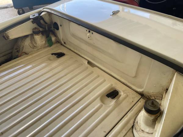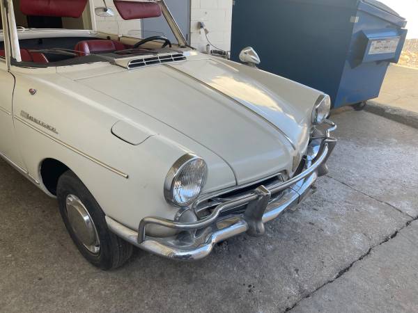 what we have here is a 1965 NSU Wankel Spider Cabriolet with 13,665 miles on the odometer . This very rare car - with only 2,375 built over a four year production period - makes it a highly desirable collectible today. The car is finished in White with its original Red and Black Vinyl Interior which is in very good condition. This NSU cabriolet has a convertible roof that needs to be replaced. Apart from its water-cooled single rotor engine and standard front disc brakes, the NSU Wankel Spider was in most respects unremarkable.