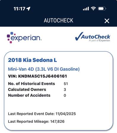 2018 Kia Sedona six cylinder engine clean inside has some body damage under left rear not a big deal everything still functions that’s why it’s priced at $4500 has 140 K no accidents on Carfax Same van goes for 6500 with nobody body damage with that mine 4500 takes it home I have a clean title in hand please call do not send me text messages or email me or message me through craigslist only phone calls show contact info