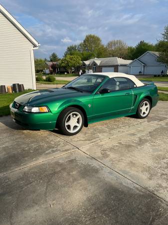 For sale 1999 Ford Mustang GT convertible 35th Anniversary Edition with only 60,000 miles. Electric green paint is very nice. Car is rust free. New tires with less than 400 miles. New AC compressor & serpentine belt. Car is in excellent condition. White convertible top is very nice with no cracks or smudges. Also have a convertible top boot, car cover, & owners manual. Car is ready for travel. Call Tom @ show contact info