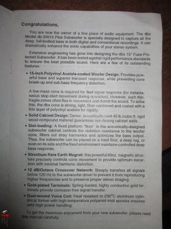 Dual coil 15" bottom firing woofer with rubber surround, never goes bad like foam.