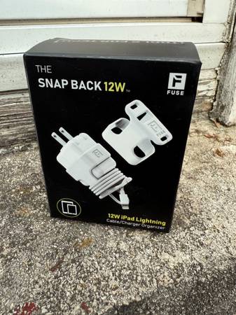 Brand new in box. This is for a 12W iPad charger plug (view the plug to see if it is a 12W). The organizer helps keep your cords organized!