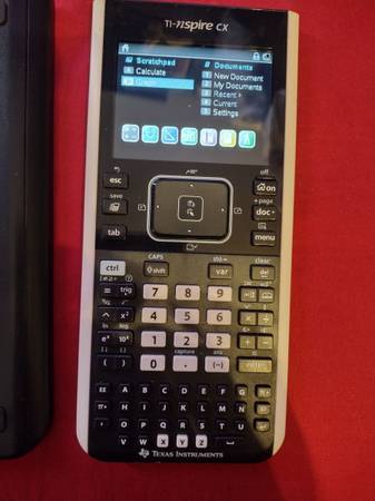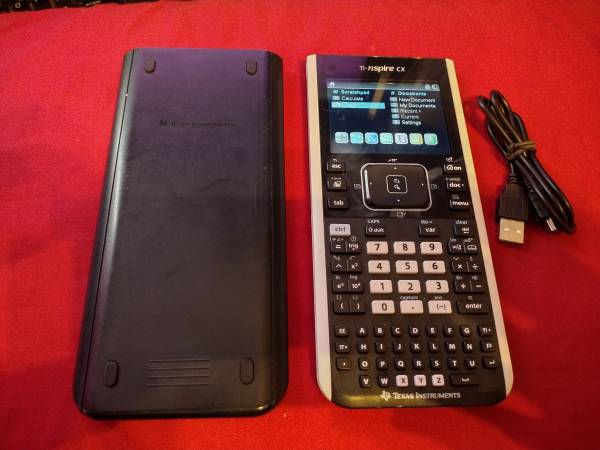 TI-nspire color graphing calculator. It comes with a rechargeable battery and charging cable.