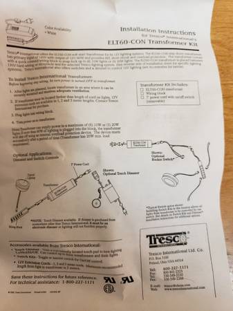 2 Tresco puck lights brand new in box. They are white, and can be surface-mounted or recessed. ELT60-CON transformer kit not included. $20