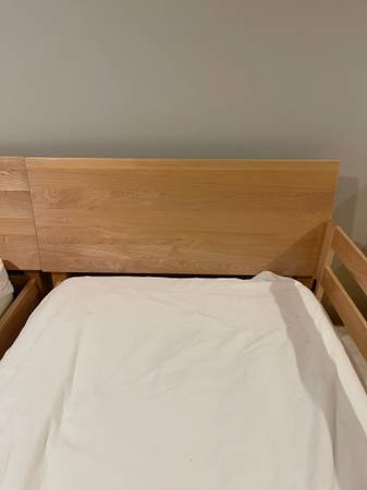Room and Board maple with bed trundle, comes with Room and Board mattress. I have 2 sets of bed frame and trundle, 550 per set. The trundle on the 2nd set is white (not shown in photos) and one...