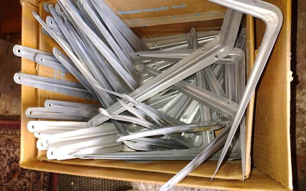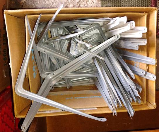 12 in. x 14 in. Black Shelf Brackets ------- 52 pcs. in total. Mostly Gray in color. Some whites ones that might be slightly smaller. 10" x 12"