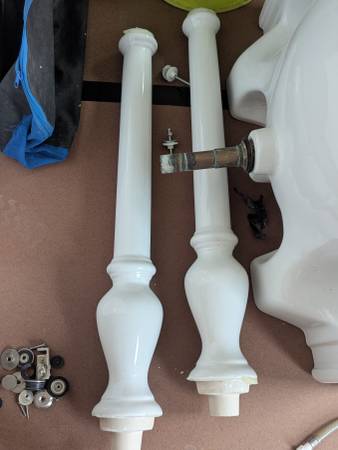 Gorgeous Barclay Milano 3-Hole Console Basin Sink 3 pcs: platform sink/basin + 2 legs Coming out of a lakeside condo bath for a remodel. In excellent condition, no chips or cracks. Please see photos...