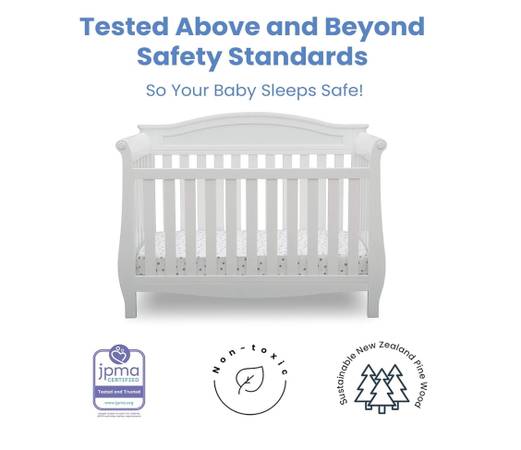 Tested for lead and other toxic elements to meet or exceed government and ASTM safety standards | This crib is JPMA certified to meet or exceed all safety standards set by the CPSC & ASTM