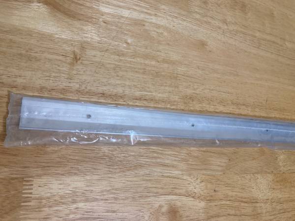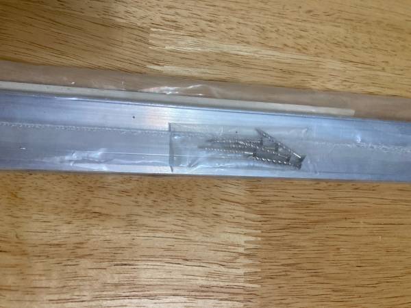 Aluminum carpet trim for use in doorways, room entryways or other locations where two unequal height flooring surfaces meet, includes screw nails and pre-drilled holes for easy installation in original package.