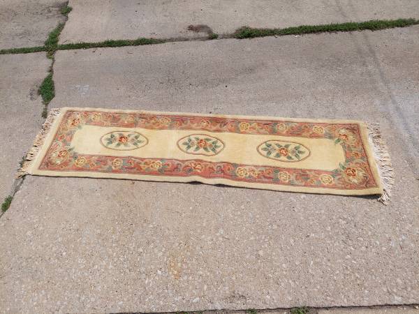 Handmade 100% wool area rug by Shun Li $350.00 8' 3'' x 11' 6'' Handmade 100% wool runner by Shun Li $125.00 24'' x 8'