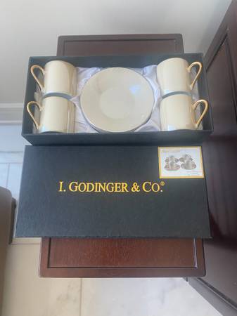 1-Pearl Luster Espresso Cups & Saucers by I. Godinger New, in Original box