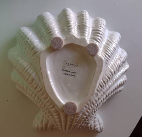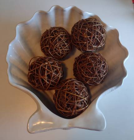 Sonoma Lifestyle: 14"x14" Large White Clam shaped Nautical bowl Includes 5 decorative twig balls. 5" in diameter