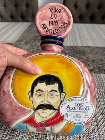 NEW. Los Azulejos Tequila Art Collectors Bottle Mexico 1910 Revolución Emiliano Zapata 100% Agave. 750ml. Cash, Zelle or PayPal. Pickup only. Located off of Pulaski exit on I-55.