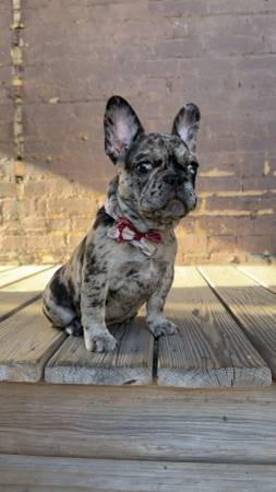 1 year old mini frenchie for sale, she has a hint of blue in both eyes, playful dog, loves attention, great with kids and has all her shots. Color of her fur is Merle, she is a pure breed with her shot records and is apart of the AKC. Loving fur baby but can’t keep her due to new location. Paid $4,000 so I’m asking $3,000 or better offer. Lmk asap. Thanks in advance.