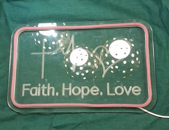 Plastic neon style sign with dimmer switch is 7 5/8" by 12 1/2". Pickup or shipping and handling will be $15 with payment of cash, check, Zelle or the CashApp
