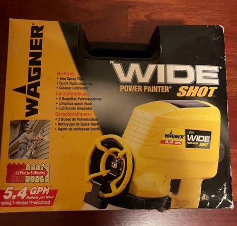 Wagner wide shot power painter 5.4 gph is located in Chicago near the major intersection of Irving Park Road and Western Avenue. Purchased New from Home Depot Brand New / Never Used / Still In Box