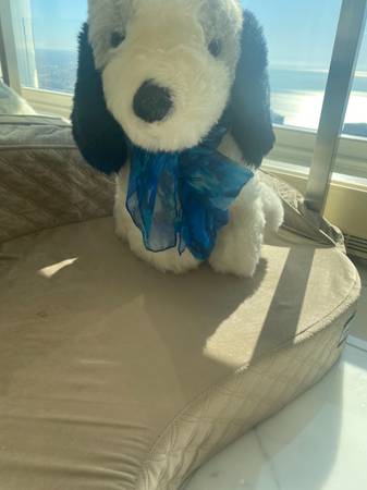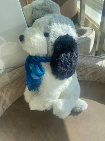 2- Med Size plush Dog white with light grey black ears & eyes. measure 20 inches head to tail.
