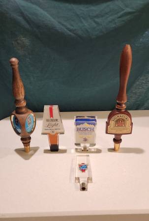 Vintage beer tappers in gently used condition. Set of five will not separate must but all of them. Local pick up ONLY! Contact for more information. I will not respond to is it still available...
